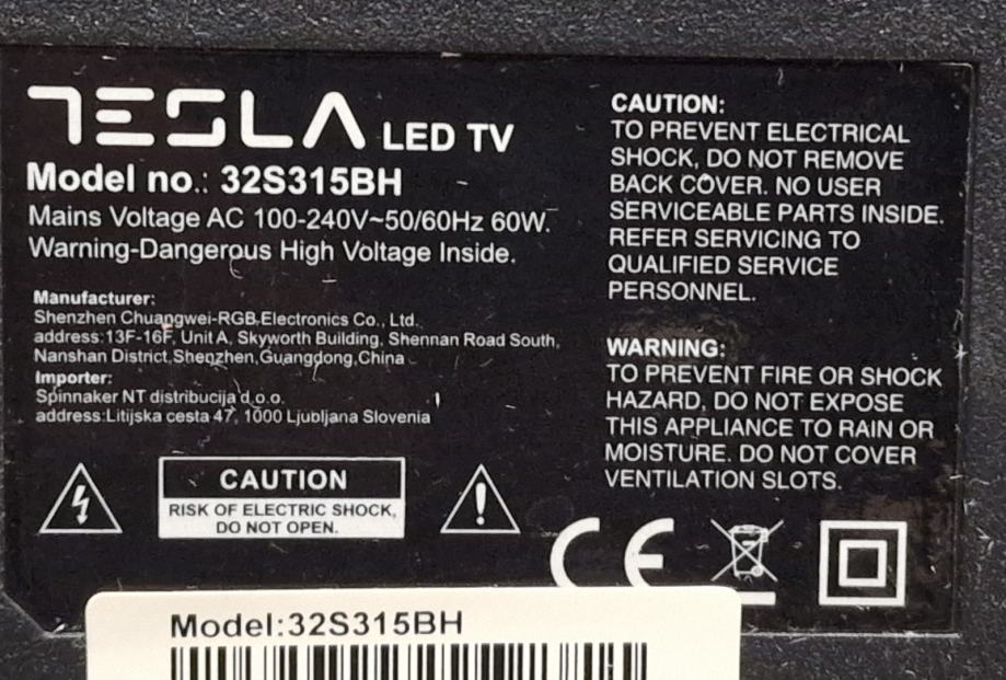 TESLA 32S315BH - DVBT2-HEVC, H.265 TV. Uz TV dolazi daljinski upravljač.