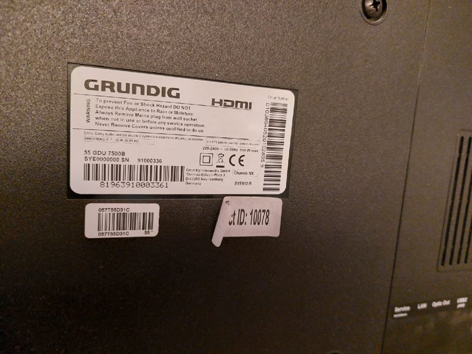 GRUNDIG LED televizor 55GDU7500B, UHD, SMART, 140 cm dijagonala, 50 Herza zaslon, Maks. rezolucija 3840 x 2160 (4K), Tehnologija LED, SMART-SMART TV -NEISPRAVAN ( ima zvuk, na sliku, otišlo osvjetljenje, popravak u servisu oko €80-90)