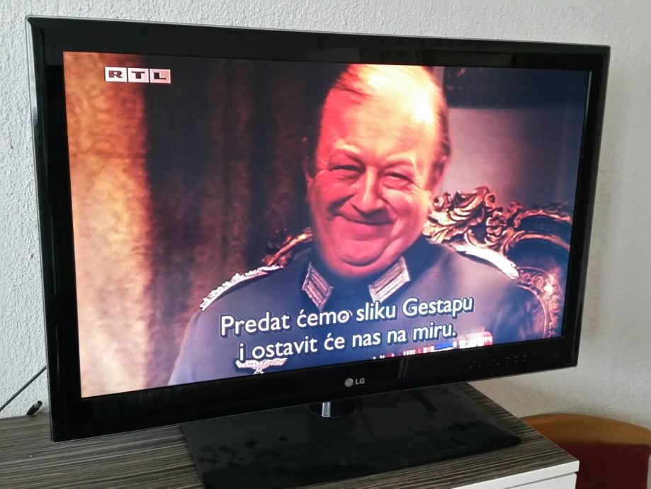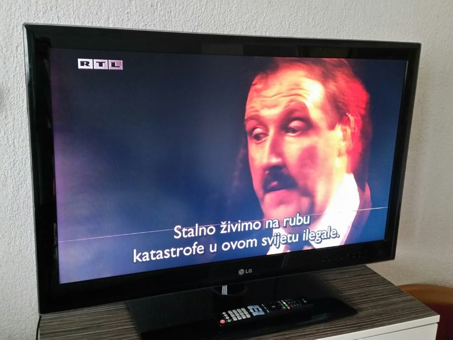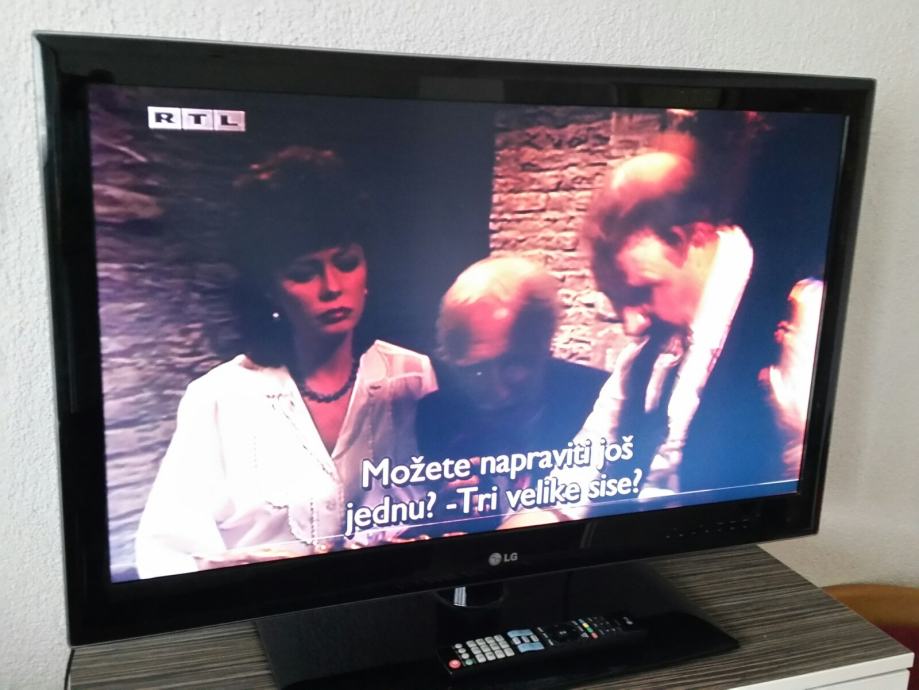 Televizor je neispravan, boja je crvena, slabije osvjetljena i slika malo usporena, kasni - vidi se na priloženim fotografijama kakva je slika.