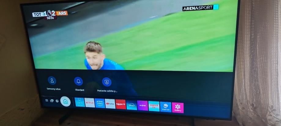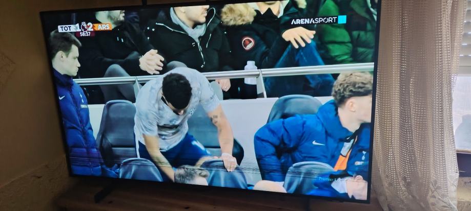 Samsung smart tv..dvbt2..4k..wifi..netflix..youtube..orig daljinski. Ima vodoravne crte dolje ali ne smate pri gledanju..sve radi.