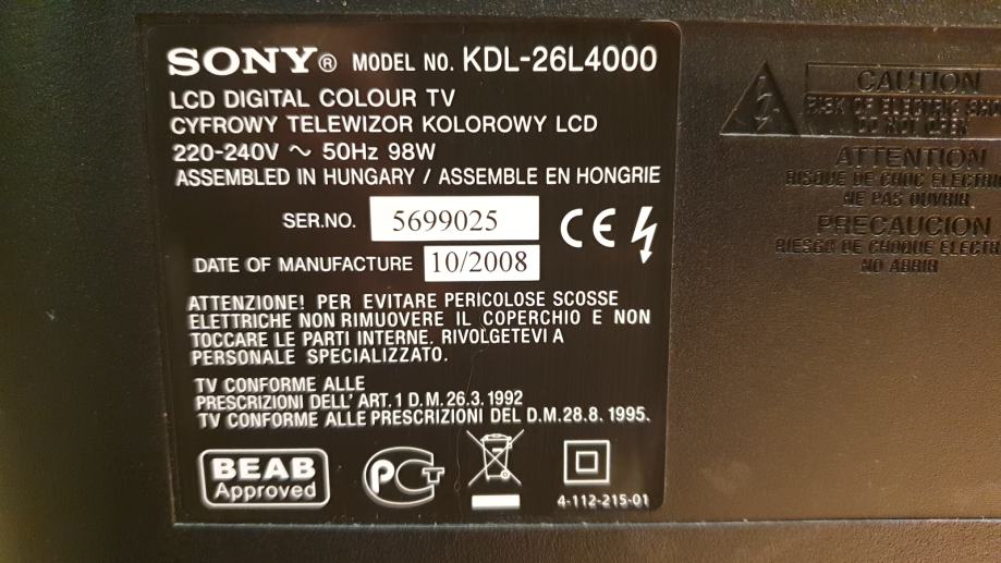 Tv Sony KDL-26L4000 LCD , ispravan. Sa daljinskim.