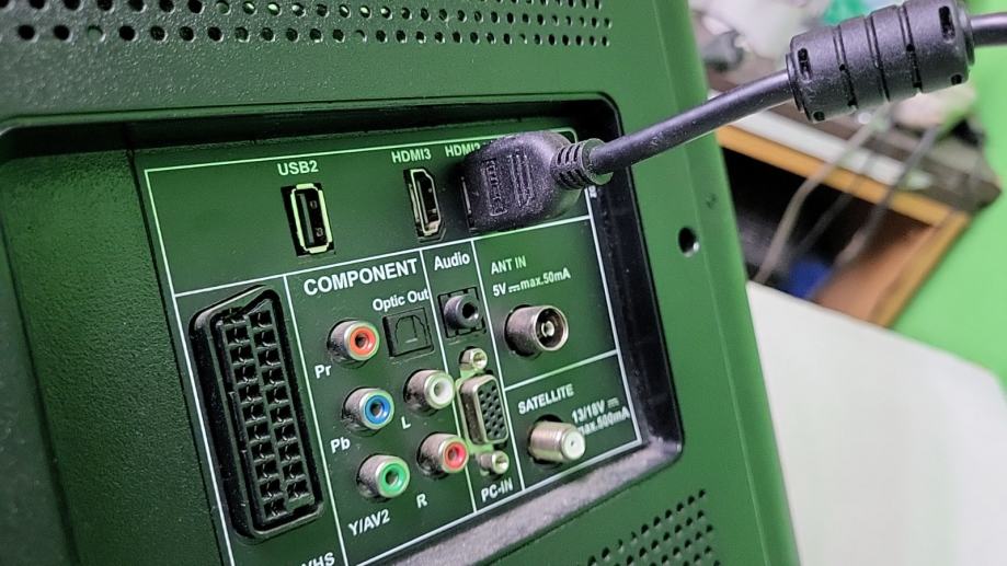 Klasičan TV bez interneta. Zamjenski daljinski, nema nogice,nema u sebi ugrađen DVBT2.