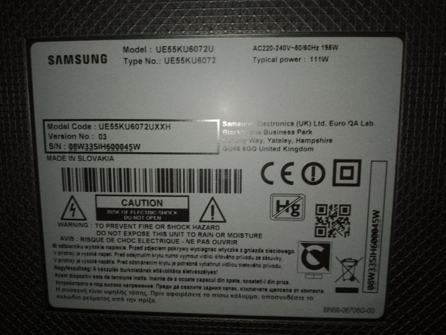 Samsung Tv, model, UE55KU6072U.