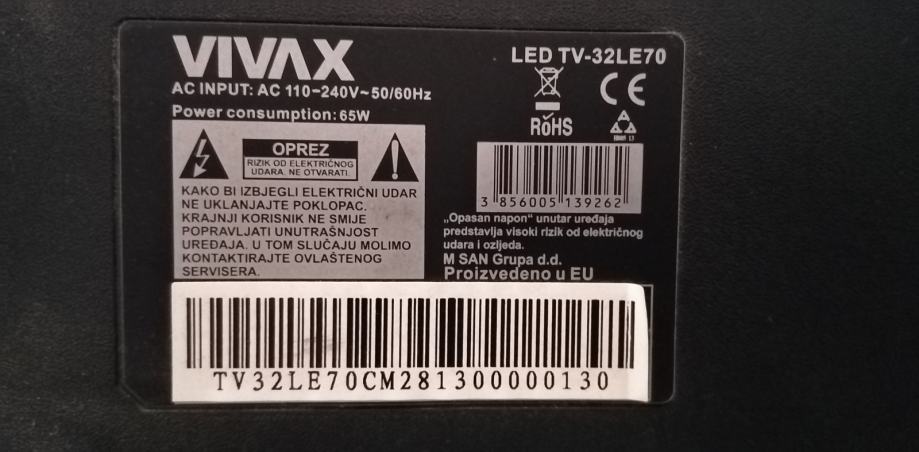 Tv je poluispravan, radi ali se većinom kod paljenja zamrzne na početnoj slici sa VIVAX logom (sistem se ne podigne), daljinski je praktički nov (kupljen prije godinu dana).