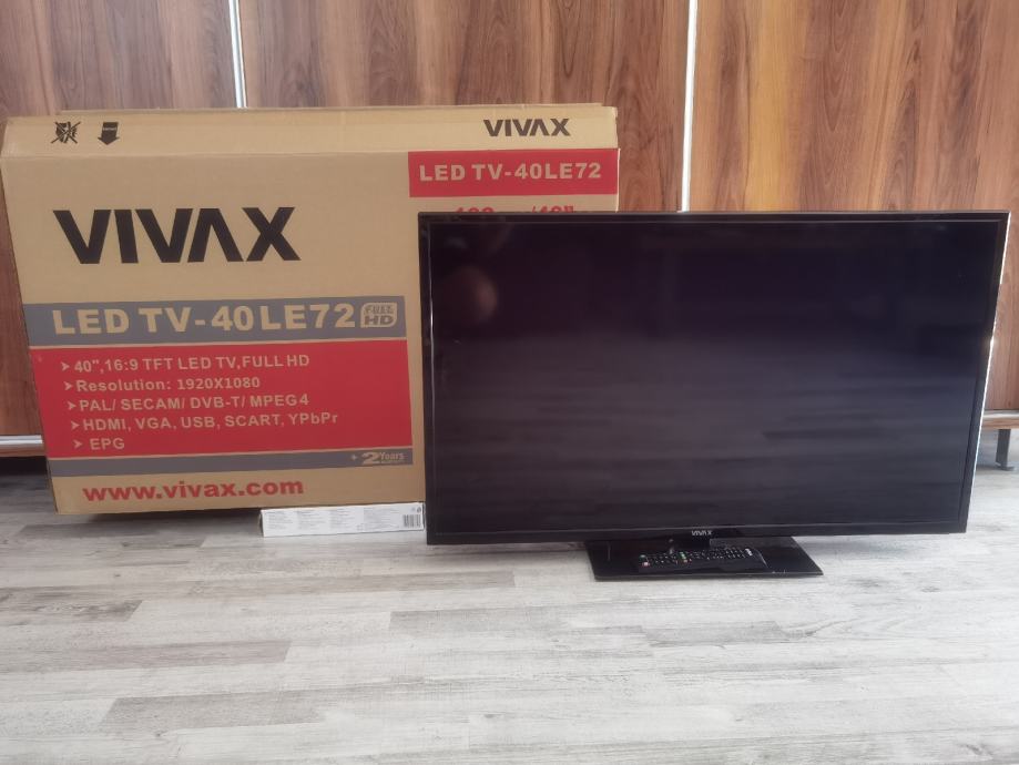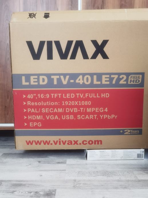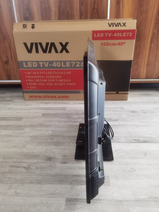 VIVAX IMAGO LED TV-40LE72, Dijagonala 40"" / 102 cm, Maksimalna rezolucija 1920x1080, Svjetlina 250 cd/m2, Kontrast 5000:1, Vidljivi kut (hor.) 176 °, Vidljivi kut (ver.) 176 °, Vrijeme odziva 5 ms, VESA 200X200, HDMI 3, Component 1, SCART 1,VGA 1, USB 1, Hotel mode, En.klasa A+