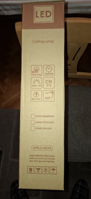 Prodajem novu LED plafonjeru okruglog oblika, bijele boje. Radi se o stropnoj svjetiljci s dekorativnim uzorkom na rubu i mat difuzorom koji ravnomjerno raspršuje svjetlost. U kompletu dolazi daljinski upravljač za upravljanje svjetlom te vijci i pribor za montažu.