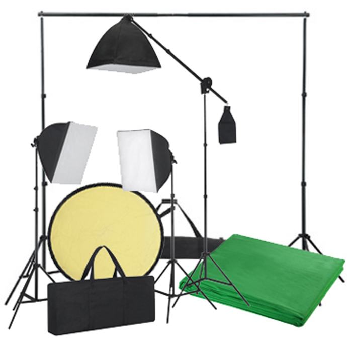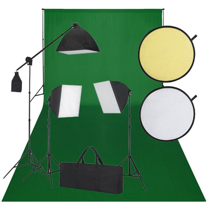 Ovaj se set može koristiti u fotografiji ili video studiju i uključuje čitav sustav pozadine. Sustav uključuje ekstra široku zelenu pozadinu, 600 x 300 cm. i svjetlosni set koji se sastoji od 3 dnevne svjetiljke s reflektirajućim zaslonima. Pomoću uključenog softboxa 40 x 40 cm možete kreirati meko svjetlo.
