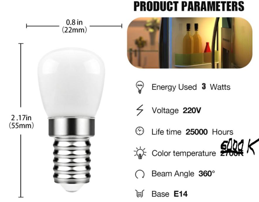 Žarulja LED E14 3W 220v hladnjak, ledenica, garažna vrata, napa slično