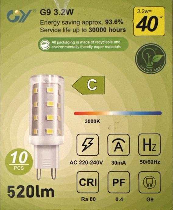 Led žarulje GY G9 LED 3.2 W, 520 lm, 3000 K, 10/1