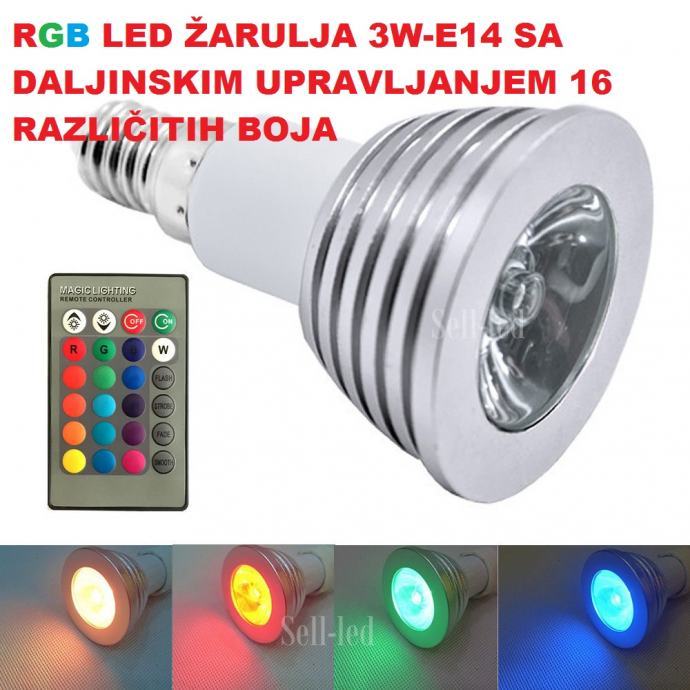 RGB LED ŽARULJA 3W-E14 SA DALJINSKIM UPRAVLJANJEM 16 RAZLIČITIH BOJA