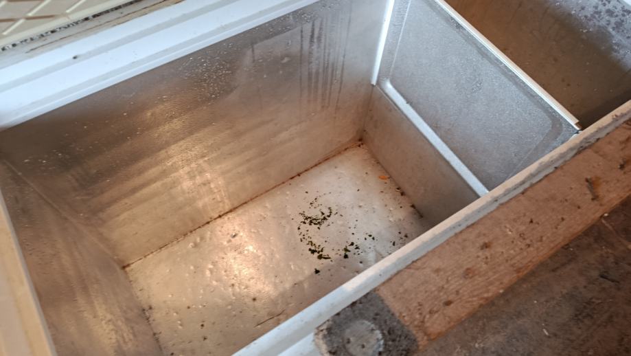 Škrinja sa slike. Radi, treba ju očistiti. Vrata ne drže, mora se staviti teški predmet na nju da bude zatvorena.