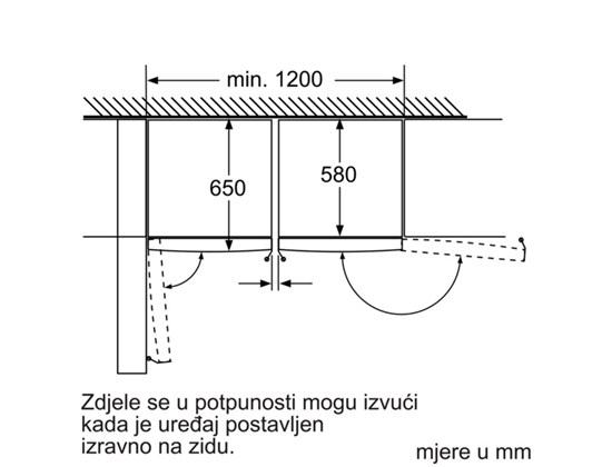 Aparate za hlađenje s kutom otvaranja vrata od 90° možete postaviti uz bilo koji zid ili u bilo koju nišu.