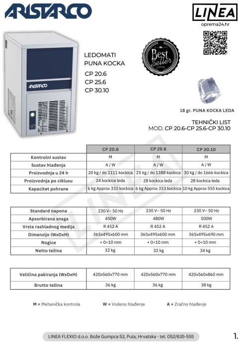 - kapacitet: 25 kg/24 h (≈1388 kockica leda)