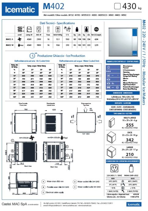 Spremnik/depozit se posebno kupuje,a odgovraju ICEMATIC mod.D205,D255, D305, D405, D 505