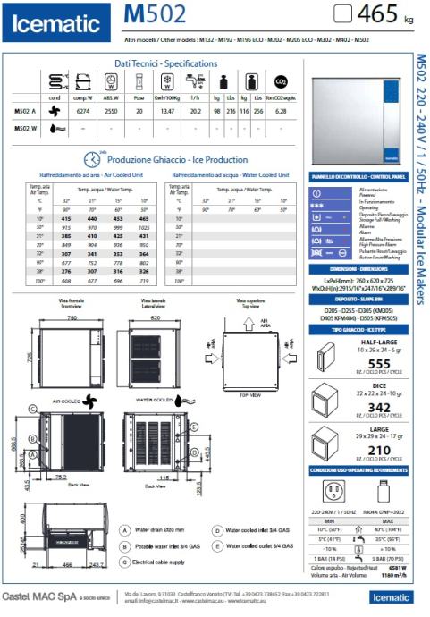Ledomat ICEMATIC M502A/W pune kocke kap.465kg/24h ISPORUKA ODMAH !!!!