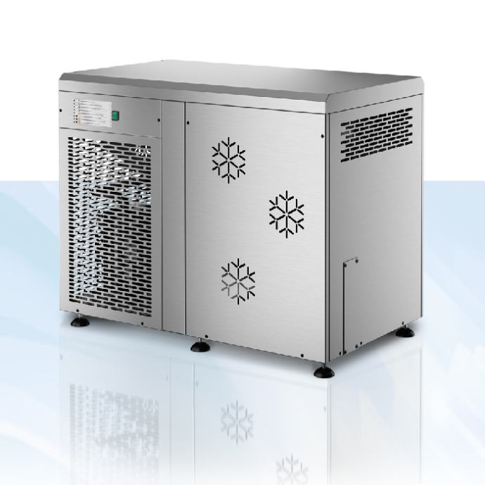 Ledomat za ljuskasti led kapaciteta 400Kg/24h.Napravljen je u cijelosti od INOX-a sto podliježe visokim standardima u prehrambenoj industriji. Led je temperature -7°C i vlažnost od 7%