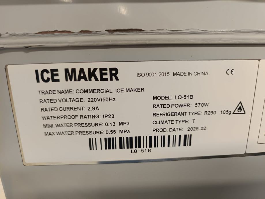 - Kapacitet proizvodnje: do 50 kg leda dnevno