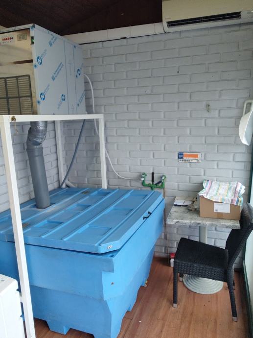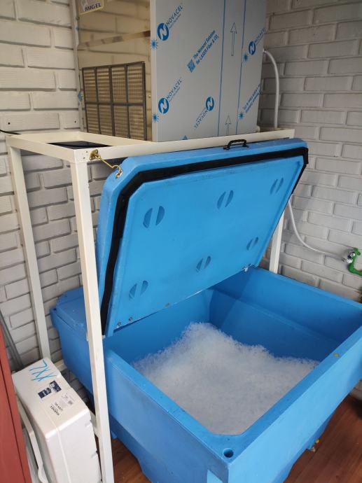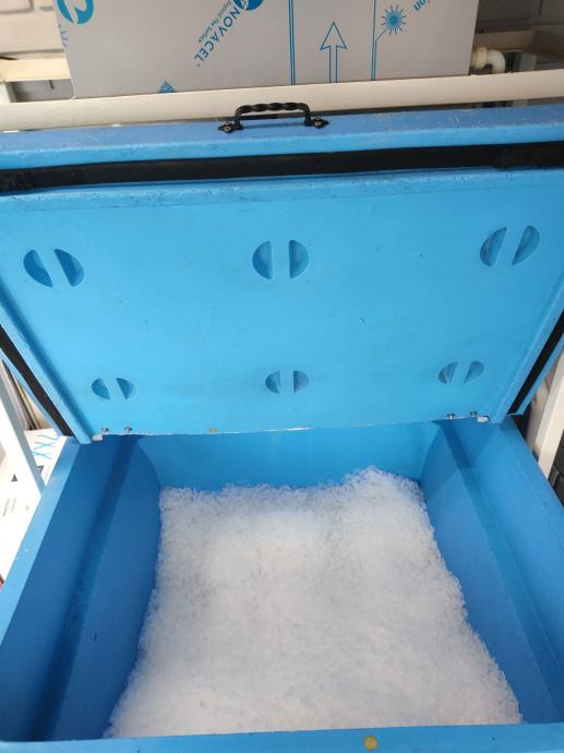 Prodajem ledomat Migel KF300(ITALIJA), proizvodi granulat. Kupljen novi početkom godine, korišten 4 mjeseca i još pod garancijom. Zračno hlađenje, granilat led, monofazna struja, mala potrošnja, kapacitet preko 300 kg/24h. Dolazi s nosačem i termoizoliranim spremnikom za led (700 l). Pogodno za restorane, ribarnice, mesnice, i hotele.Cijena novog sa svom opremom 5500.-E. Kontakt mob. 098328400.