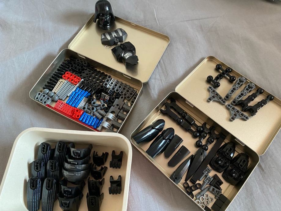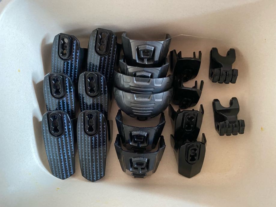 Svi dijelovi na broju, nema uputa, kutija u lošem stanju, kaciga ima jednu veću ogrebotinu (vidljivo na 9. fotografiji)