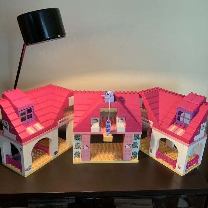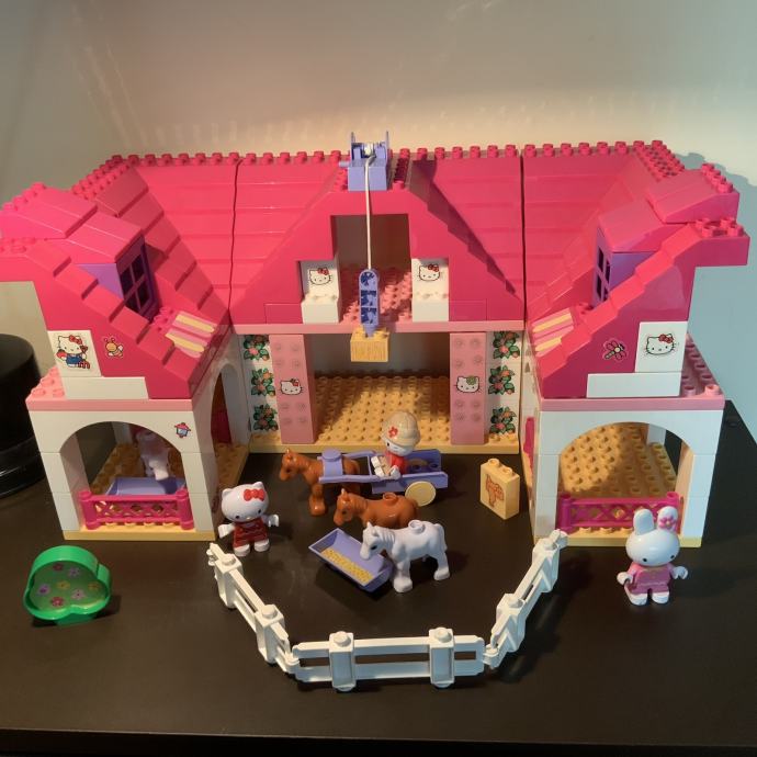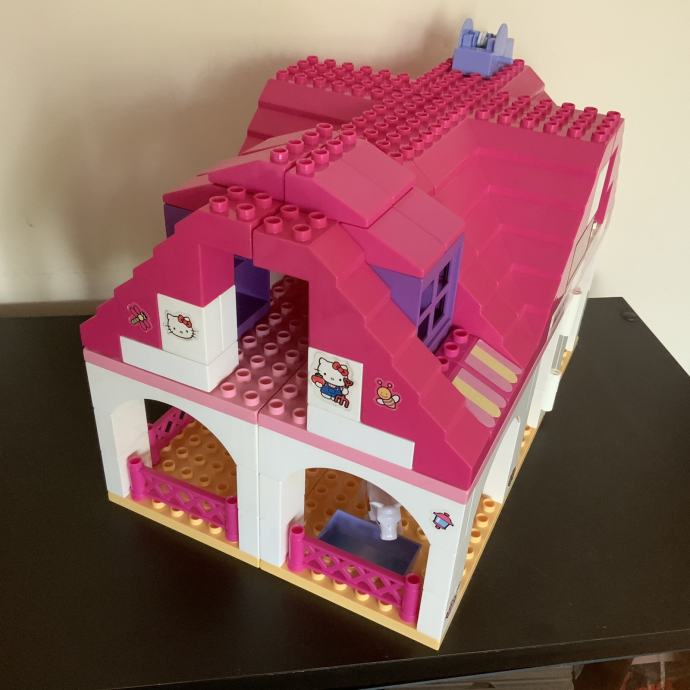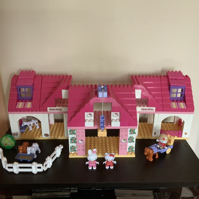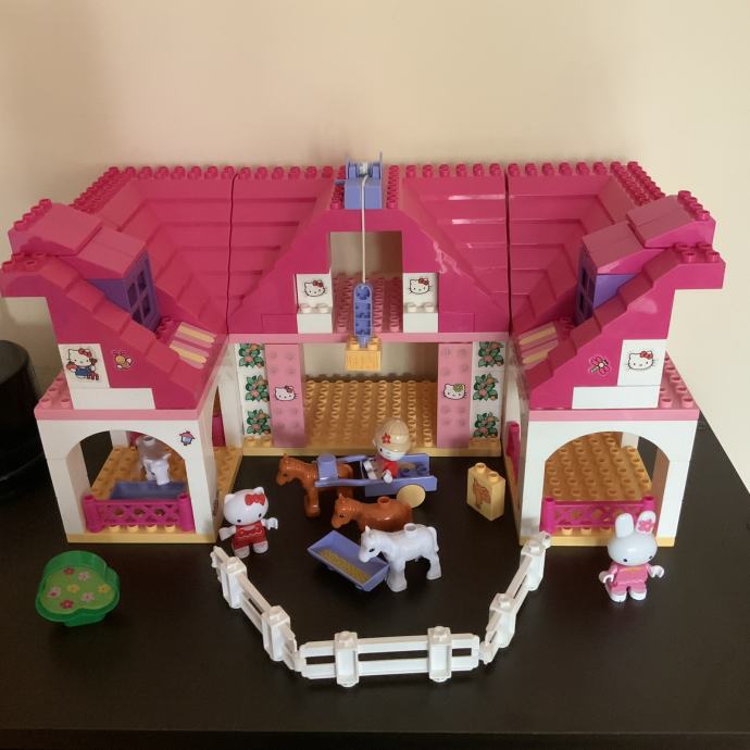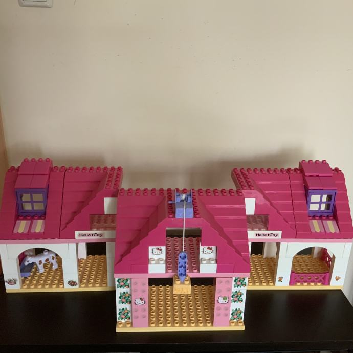 Prodajem Hello Kitty veliku farmu-Unico plus kocke. Kuća ima šarke te se može sklapati na različite načine. Dimenzije sklopljene kuće su 38x26 cm, dok je rasklopljena 58x47 cm.