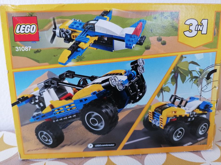 Lego Creator 31087, set 3 u 1. Mogu se sastaviti 2 vozila i letjelica. Sve kockice na broju i neoštećene upute, gotovo nove. Kutija malo raskinuta na jednoj strani.