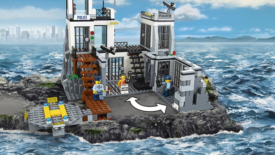 Pomozi policiji da zatvori zlikovce na LEGO® City Otoku sa zatvorom! Gledaj zločince kako vježbaju u zatvorskom dvorištu i otvori zatvor da vidiš kako zatvorenici planiraju bijeg. Ti i policajci morate biti veoma oprezni da biste uhvatili zatvorenike dok se kližu kroz kanalizaciju da uhvate čamac za bijeg! Uskoči u helikopter i zaustavi ih u pokušaju zračnog bijega u balonu. Učinit će sve da bi pobjegli s Otoka sa zatvorom!