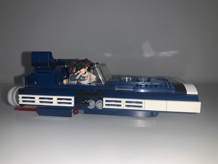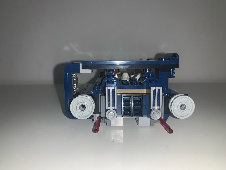 set sadrži otvoreni kokpit za 2 mini figure, poklopac motora i dodatak streljiva, odvojivi motor, skladišni pretinac s skrivenim opterećenjem, skriveni kotač i 2 pištolja