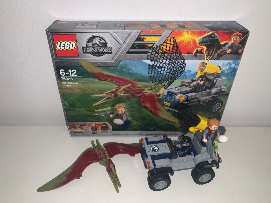 Stage a fast-action LEGO® Jurassic World™ 75926 Pteranodon Chase and help Owen and the tracker save the dinosaur. This exciting LEGO dinosaur toy play set features a high-speed offroader with a net shooter, tranquilizer gun, 2 minifigures and a Pteranodon figure.
