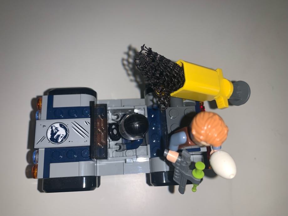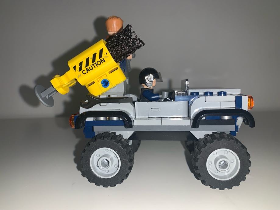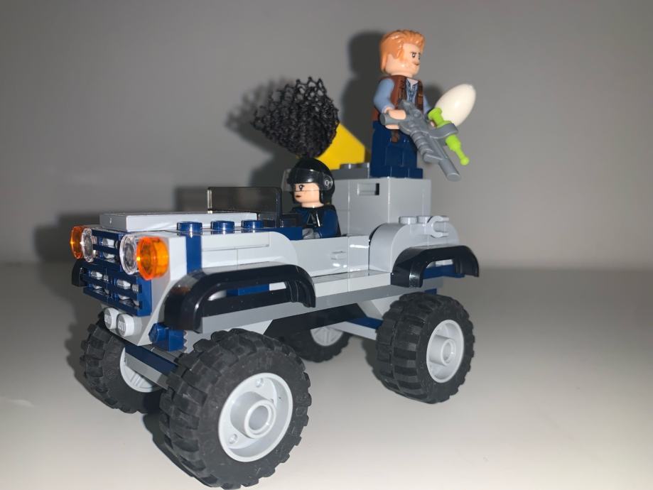 Features a high-speed offroader with a net shooter, storage chest for a dinosaur egg and 2 holders for the wrench and tranquilizer gun.