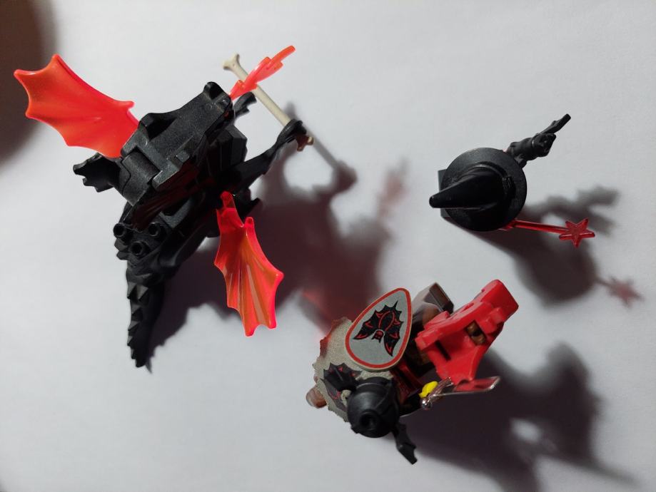 LOT Lego Fright knight ocuvanih figurica sa opremom iz osobne kolekcije, vitez sa smedjim konjem, vjestica, crni zmaj