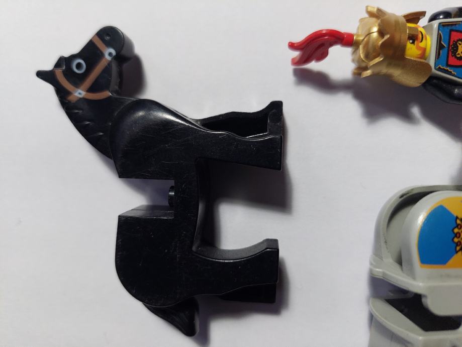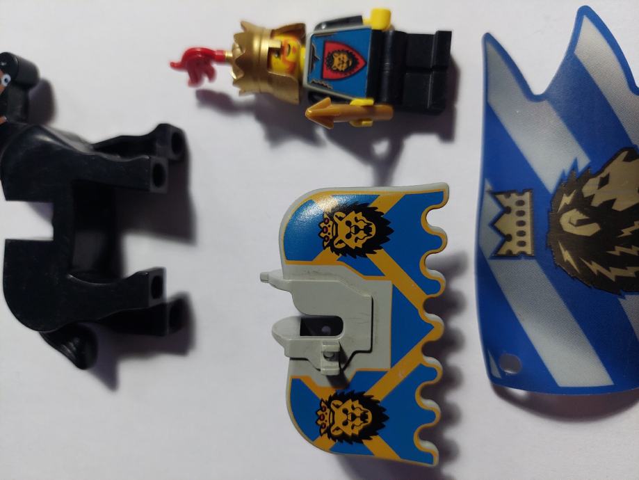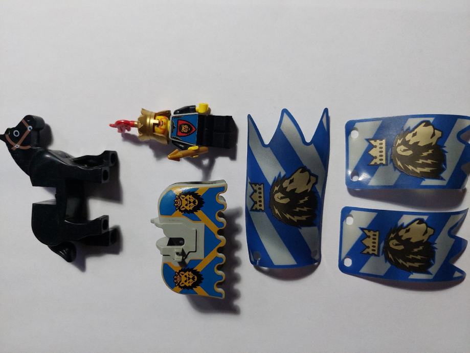 LEGO figurica kralja, konj sa plastem i 3 zastave, max ocuvano bez ostecenja