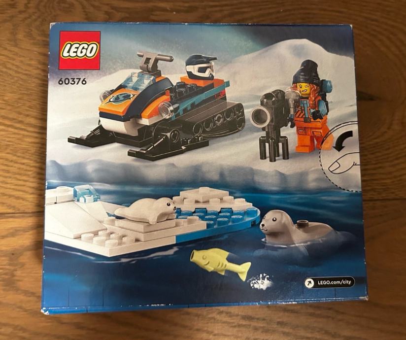 Sadrži model motornih saonica, arktički prizor, figuricu istraživača i 2 figure tuljana. 70 kockica.