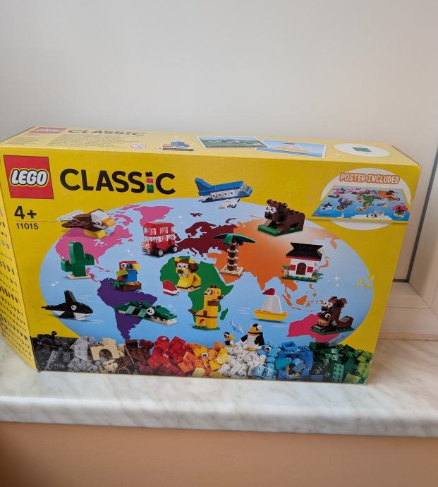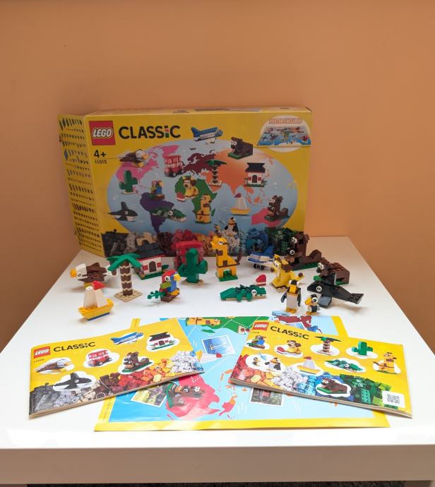 Prodajemo Lego classic 11015 kockice - figurice u original kutiji s original uputama i plakatom s kontinentima odakle potječu svi modeli.