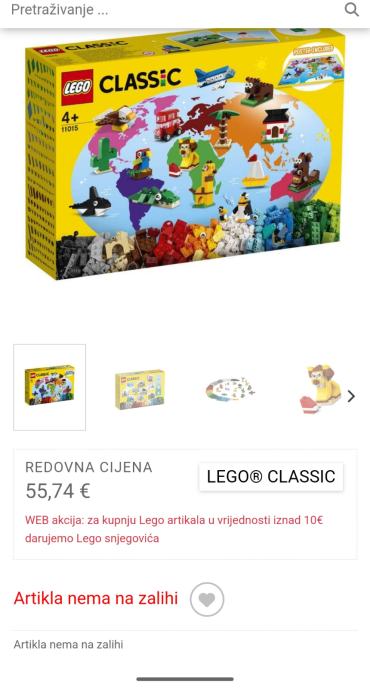 Neka dječja kreativnost obiđe svaki kutak svijeta u kompletu igračaka iz serije LEGO Classic. Djeca dobivaju 15 poticajnih ideja za slaganje, osmišljenih po uzoru na poznate životinje i objekte iz cijelog svijeta, od afričkog lava i palme do australskog klokana sa slatkim mladuncem te plakat s kontinentima odakle potječu svi modeli.