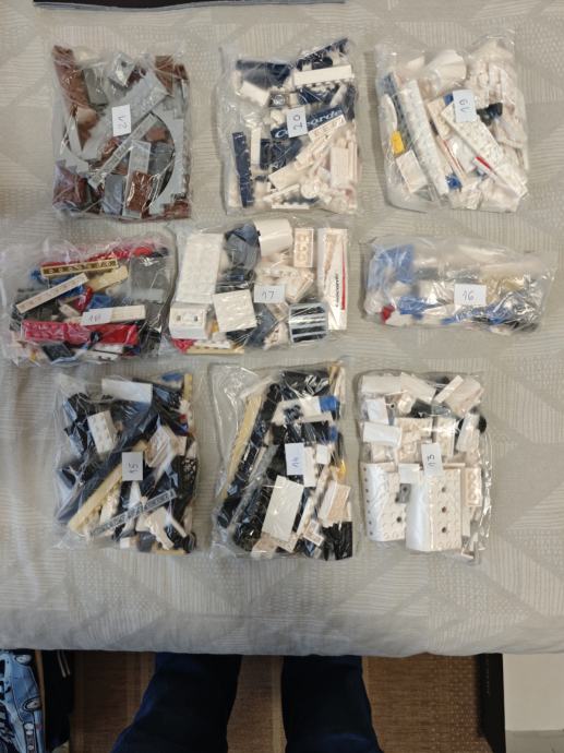 Svi dijelovi na broju i upakirani u vrecice i oznaceni.