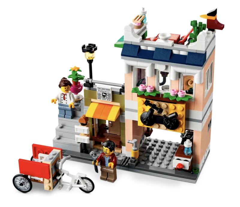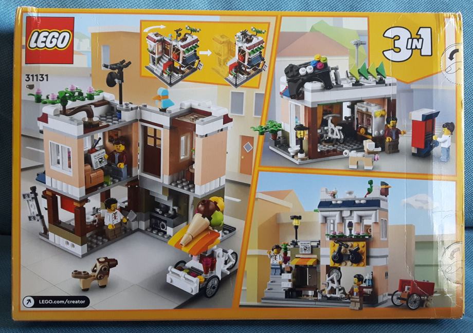 Obično su Lego setovi preskupi za ono što se u njima nudi, no ovaj je zaista sjajan - ima mogućnost gradnje čak 3 modela kuće za Lego grad (glavna je oko 20cm visoka): noodle shop, dućan za bicikle i salon za arkadne video igre! Stražnji dio glavnog modela može se otvoriti za još više unutarnjih mogućnosti igranja. U setu dolaze i 2 mini figure, štand za sladoled, bicikl, figurica psa... prepun je detalja i sitnih djelova koje nema u ostalim legićima.