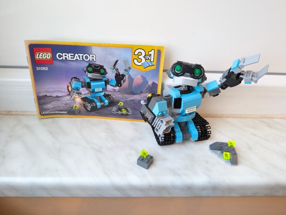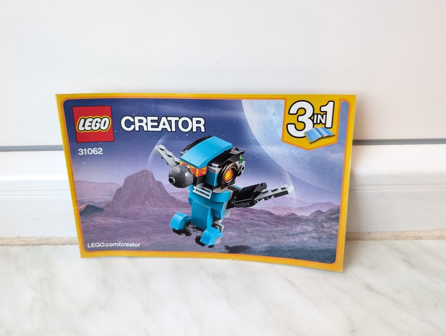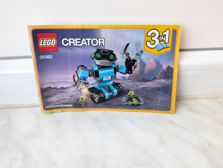 Lego Creator 31062 kocke, set dolazi s original uputama za slaganje, bez original kutije. U setu je i kockica koja svijetli (molim vidjeti sve slike). Možete slagati razne modele: robot istraživač, robot pas i ptica robot.