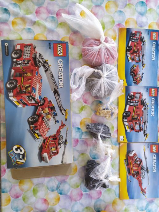 Lego Creator vatrogasni kamion/helikopter/auto, set 3 u 1, raspoređeni komadići po bojama