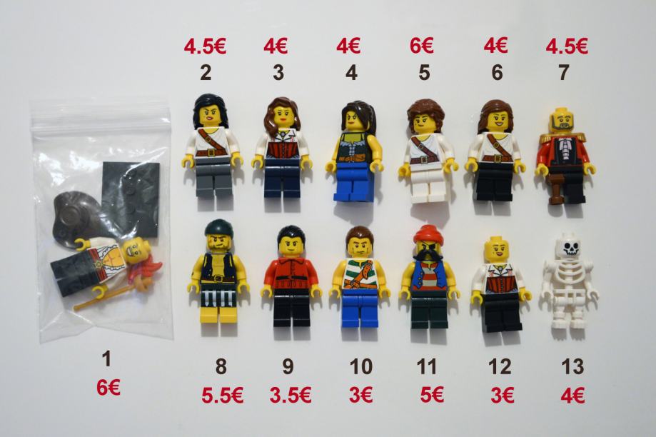 Lego minifigure na temu pirates, složene od raznih dijelova.