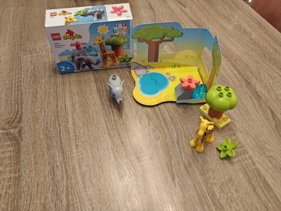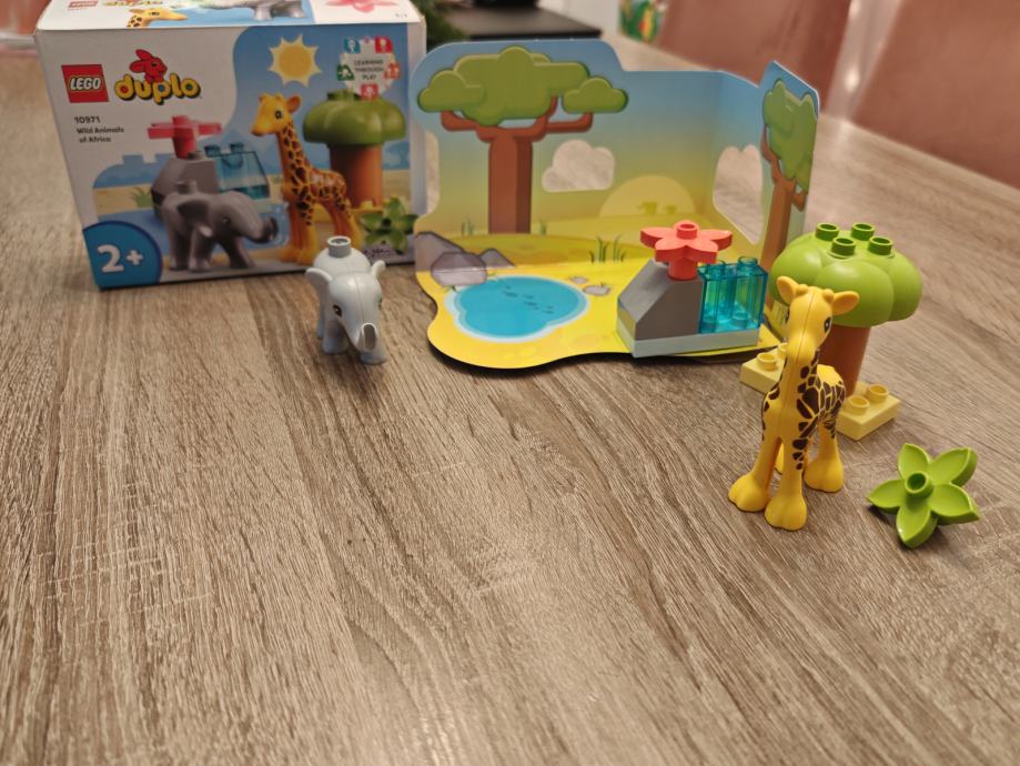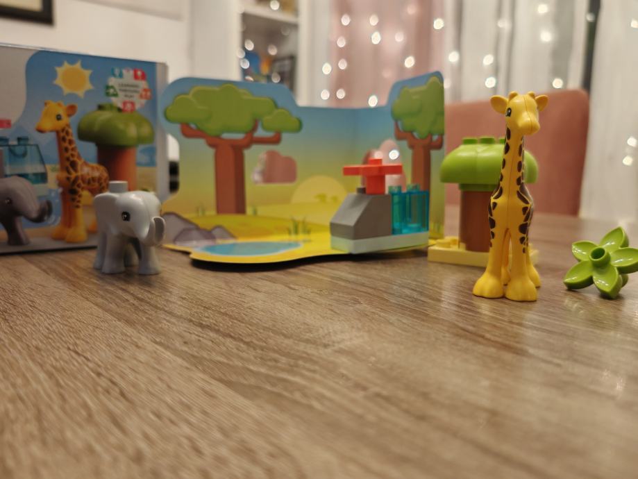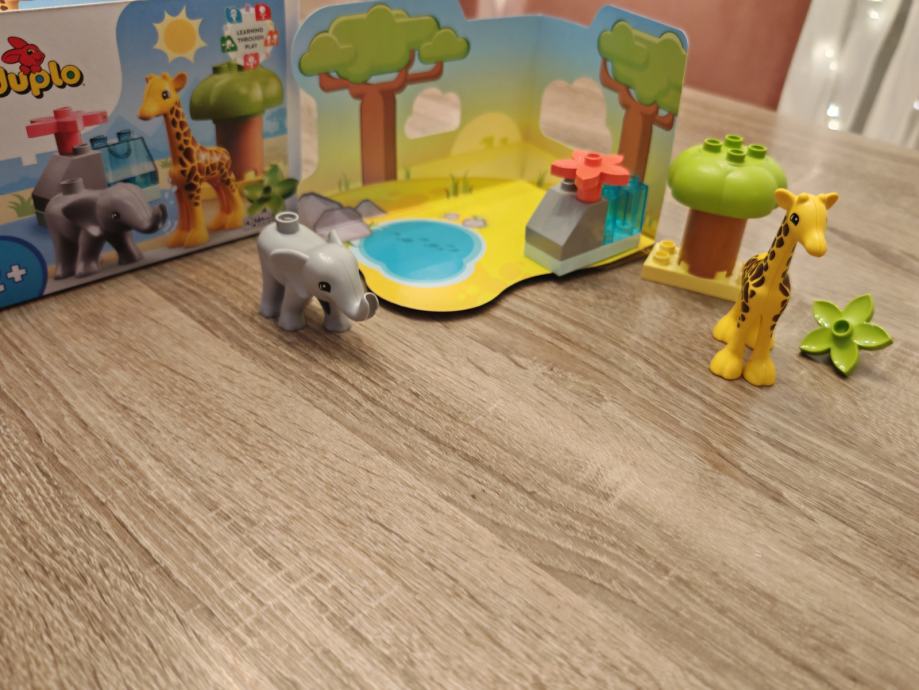 Uključuje figurice slona i žirafe, cvijeće, drvce i prostirku za igru