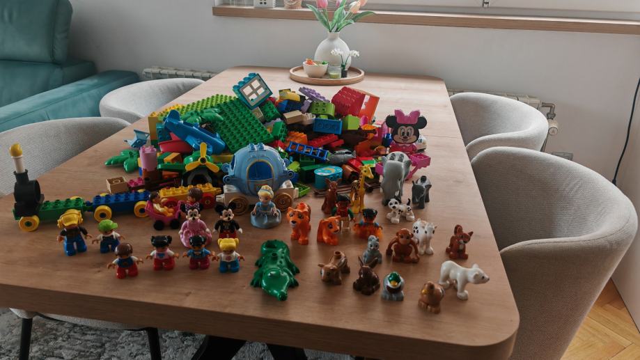 Prodajem veliki lot lego duplo kockica sa fotografija, sve zajedno u plavoj, rozoj ili zelenoj Ikea kutiji na kotačiće. Cijena 80 eura.