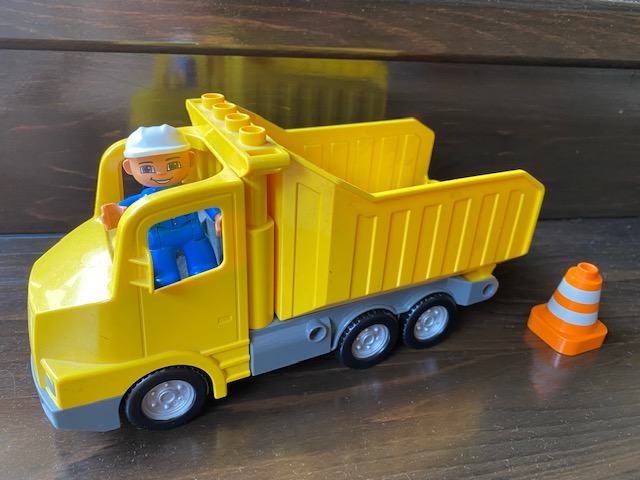 Prodajem lego duplo set koji sadrži kamion, čunj i lego duplo figuricu.