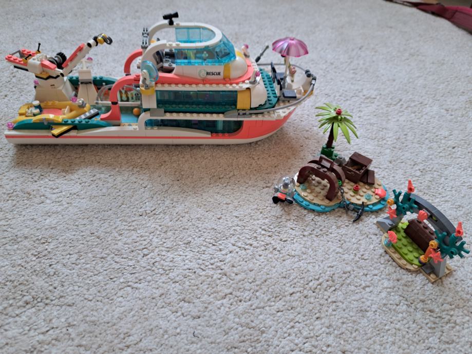 Prodaje se lego set - Lego Friends 41381 Brod za misiju spašavanja. Set je u odličnom stanju, kao nov, sve kockice su na broju, kao i upute za sastavljanje. Set se sastoji od 908 dijelova.