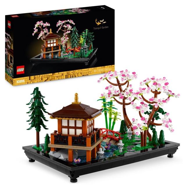 Enjoy a mindful building project with the LEGO® Icons Tranquil Garden (10315) building set for adults. Rewind as you craft each beautiful detail and enjoy rearranging the flora to create that perfect look for display in the home or office.A feature-rich gardenBased on a traditional Japanese garden, this buildable model includes an arched bridge, stream, koi carp, lotus flowers, trees, rocks, stone lanterns and a pavilion with a detailed tea-ceremony room.Welcome to the zoneDiscover a space for relaxation with the LEGO Icons Tranquil Garden – a haven for adults and a great gift idea for gardening and mindfulness enthusiasts. Check out the inspiring range of LEGO building sets for adults.Build and tend a beautiful garden – Take time out with this LEGO® Icons Tranquil Garden (10315) mindful building project for adultsWhat’s in the box – Everything you need to build a Zen garden model with a pavilion, arched bridge, stream, koi carp, lotus flowers, trees, rocks and stone lanternsCustomise your display – Slots in the base of the Zen garden model make rearranging easy, so you can create different configurations for display in the home or officeA mindful gift – The LEGO® Icons Tranquil Garden is designed for adult fans of LEGO building and creative gardening projectsAuthentic accessories – LEGO® accessories include a teapot and whiskDigital building instructions – The LEGO® Builder app features a digital version of the building instructions included with this setDimensions – Measures over 21 cm (8 in.) high, 32 cm (12.5 in.) wide and 20 cm (8 in.) deepStep into the moment – Discover the LEGO® Icons Tranquil Garden, part of a range of building sets designed for adult building fansQuality materials – LEGO® building bricks are manufactured from high-quality materials. They’re consistent, compatible and connect easily every time: it’s been that way since 1958Safety ensured – LEGO® pieces are rigorously tested for safety and quality to ensure the optimal building experience