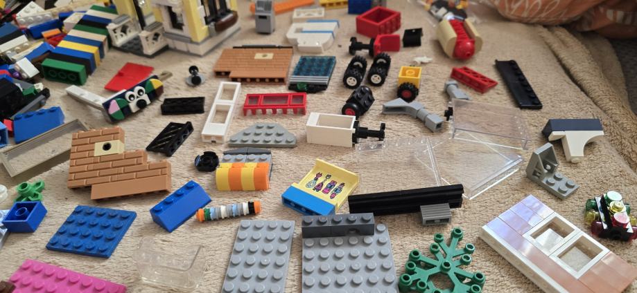 Prodajem veliki set kockica. Sadrži mnogo specijalnih dijelova kao kotači , ograde, prozori, vrata , semafori, razni ukrasi i detalji, lego ploče, namjestaj, cvijetovi , itd.