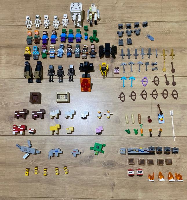 Prodajem lego minecraft lot od nekoliko polovnih setova sa dodatnim figuricama i kockicama.