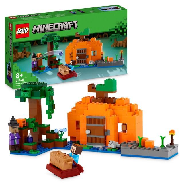 Minecraft® players can put the game’s pumpkins center stage with LEGO® Minecraft The Pumpkin Farm (21248). Starring one of the game’s most popular characters and a troublesome witch, this versatile playset will inspire endless action-packed adventure at the pumpkin patch for kids aged 8+.Hands-on Minecraft pumpkin playsetSet in the game’s infamous swamp biome, this highly reconfigurable toy features leading character Steve at a pumpkin farm built around a pumpkin-shaped house. The house has a furnished interior, including a bed, crafting table, furnace and a frog light. Outside is a pumpkin patch that Steve cultivates with his hoe. Play opportunities shift to battle action when a witch throws potions at Steve and he fends her off using his bow. The set also includes a frog, boat and a chest containing an egg and sugar, giving kids the opportunity to make pumpkin pie! For added digital fun, builders can zoom in, rotate sets in 3D and track their progress using the fun LEGO Builder app.Minecraft® pumpkins and potions – LEGO® Minecraft The Pumpkin Farm (21248) features an action-packed pumpkin patch located in the game’s swamp biomeAuthentic action – The set features familiar Minecraft® character Steve, plus a witch, a frog with frogspawn and lots of accessories, including a boat, treasure chest and a carved pumpkinMany ways to play – Kids can build a pumpkin-shaped house, tend a pumpkin patch, battle a potion-flinging witch, sail a boat and combine ingredients to make pumpkin pieGift for kids– Give Minecraft® players aged 8 and up a birthday, holiday or any-day treat with this versatile real-world Minecraft playsetEndlessly reconfigurable – The playset measures over 4 in. (11 cm) high, 10.5 in. (27 cm) wide and 5.5 in. (14 cm) deep and combines with other sets (sold separately) in the LEGO® Minecraft® rangeIntuitive building instructions – Kids can download the LEGO® Builder app for an immersive building experience, with digital tools to zoom in and rotate models in 3D, save sets and track progressMinecraft® made real – LEGO® Minecraft sets give kids a different way to enjoy the popular game, with mobs, scenes and features brought to life with the hands-on creativity of LEGO bricksQuality guaranteed – LEGO® components meet stringent industry quality standards to ensure they are consistent, compatible and easy to build withSafety assured – LEGO® bricks and pieces are dropped, heated, crushed, twisted and analyzed to make sure they satisfy rigorous global safety standards