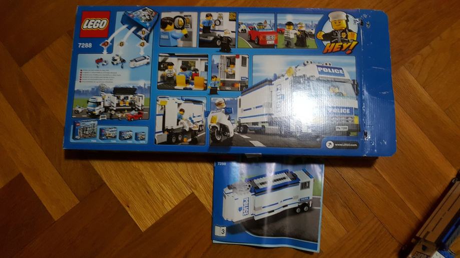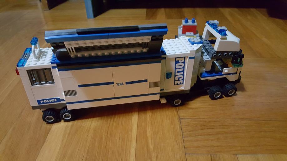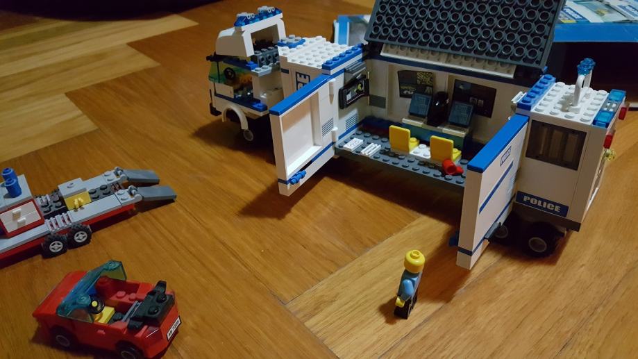 Lego policijski kamion, u čijoj se unutrašnjosti nalazi pokretni policijski ured. Postoji i original kutija, kao i upute. Kabina kamiona na slici je složena provizorno, po uputama ju ponovo treba složiti. Cijena 89 kn.