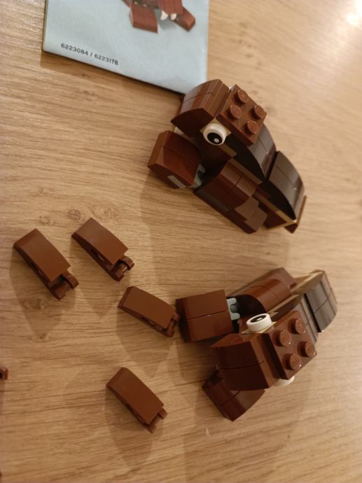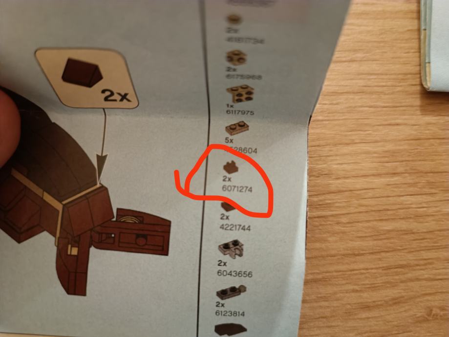 U setu nedostaju dvije iste male smeđe kockice (zaokruženo crvenom bojom na fotografiji) lego oznake 6071274. Potrgale su nam se :( Set dolazi bez vrećice i rezervnih dijelova, a ima upute.