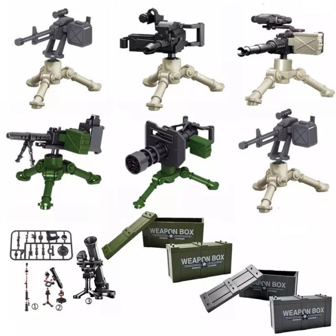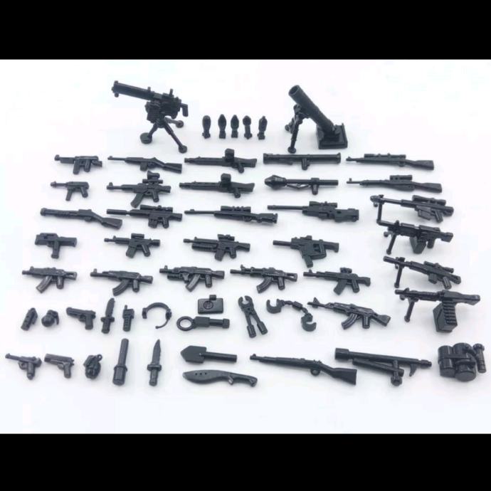 - 7 komada u osnovnom setu + 20 komada raznog manjeg oruzja (puške, noževi, bombe...)